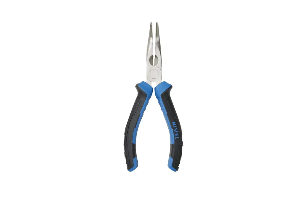 ALICATE BOCA SEMI REDONDA CURVA CON CORTANTE 160 MM MANGO BIMATERIA NIVEL