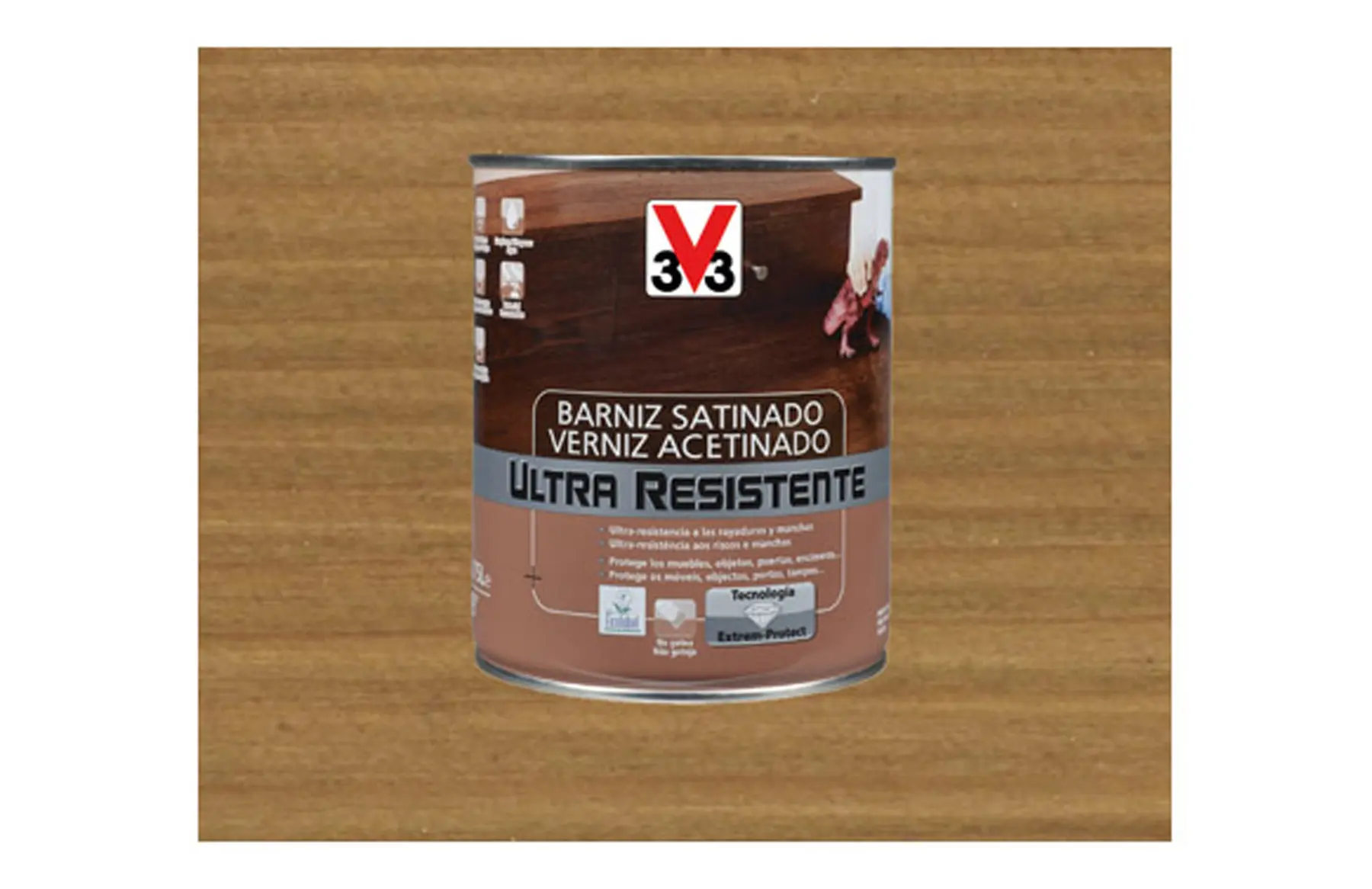 BARNIZ INTERIOR AL AGUA ULTRA RESISTENTE SATINADO 750 ML ROBLE OSCURO V33