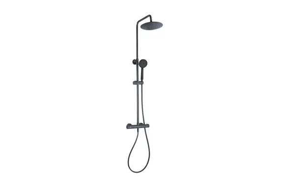 COLUMNA DE DUCHA CORAL TERMOSTATICA NEGRO CON ROCIADOR REDONDO ARTIC