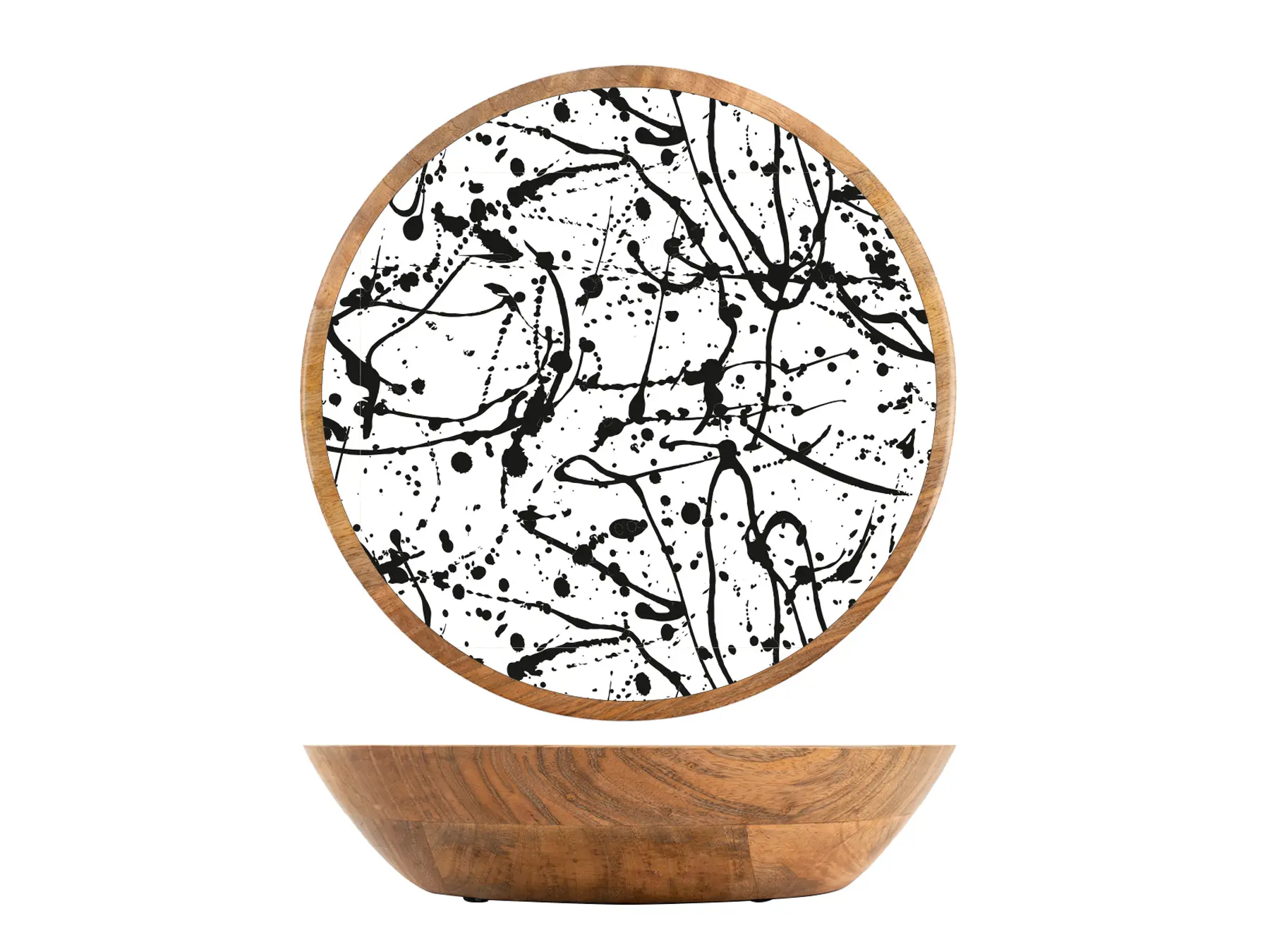 BOL MADERA MANGO DECORADO 30 CM BLANCO/NEGRO NON