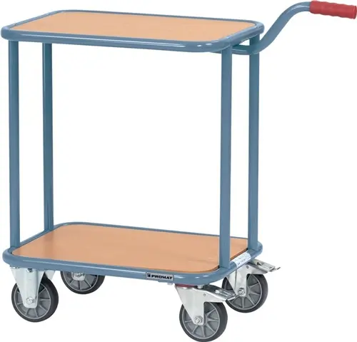 CARRO CON ASA L 600 X AN 450 MM 2 PLATAFORMAS MADERA AZUL CO PROMAT
