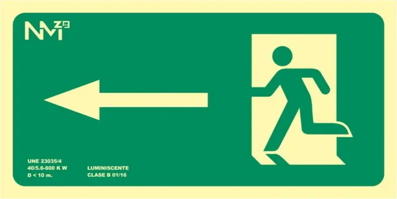CARTEL SEÑAL 320X160MM LUMINISCENTE PVC SALIDA IZQUIERDA NOR NORMALUZ