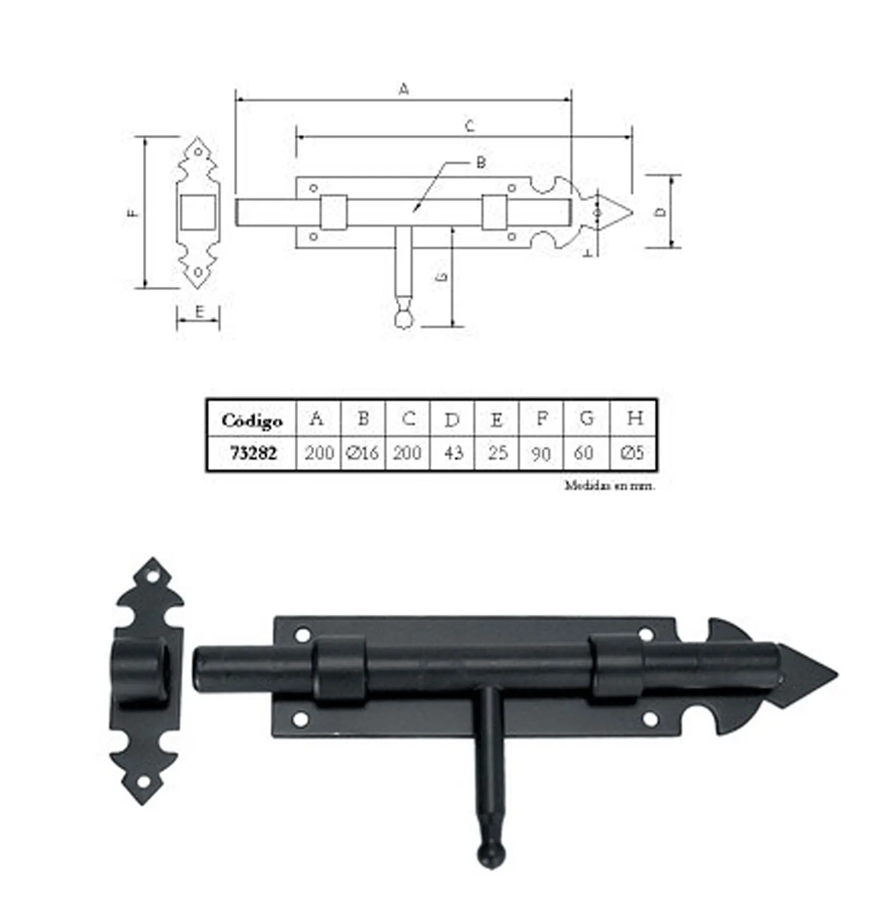 CERROJO 200MM 73282 NEGRO