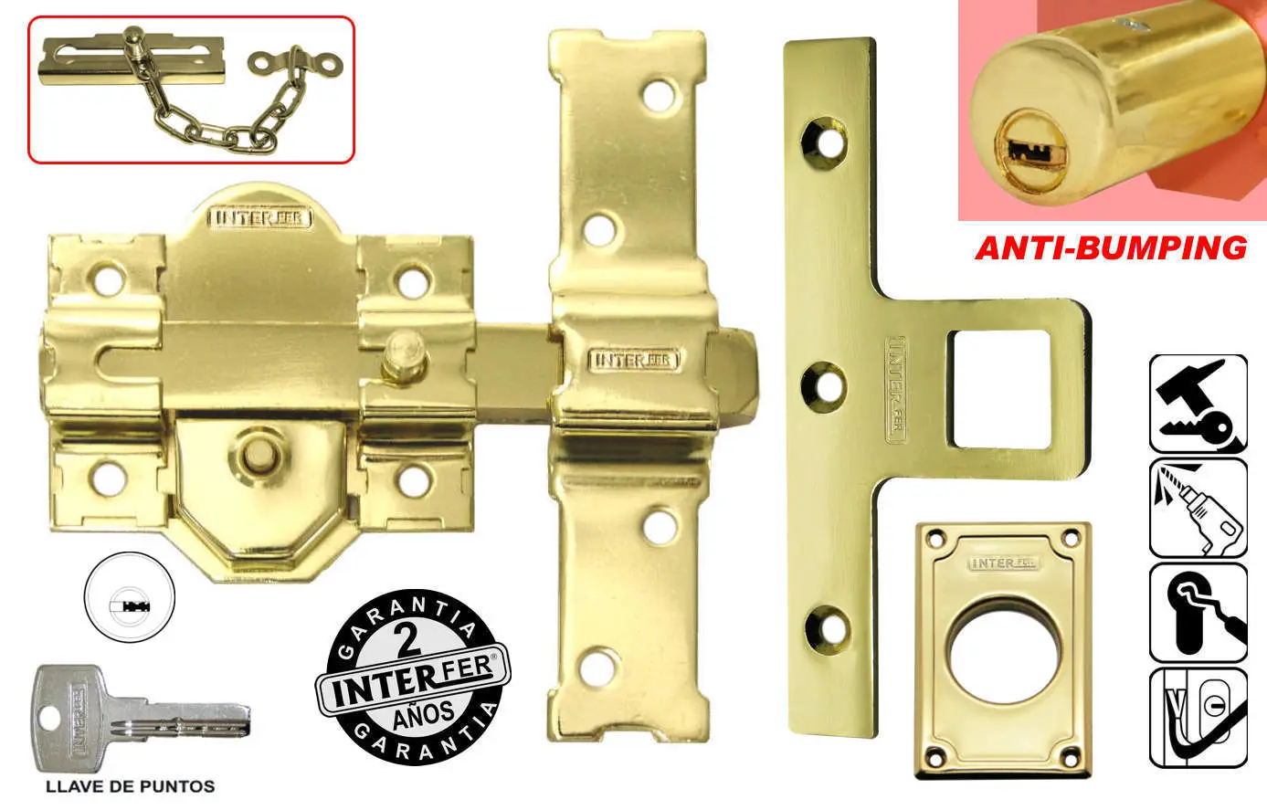 CERROJO 31SA CON CILINDRO 50MM DORADO INTERFER