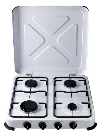 COCINA A GAS 4 FUEGOS PORTATIL CON TAPA 515X510X95 MM 1,4/1,2/1,2/0,85 KW VIVAHOGAR