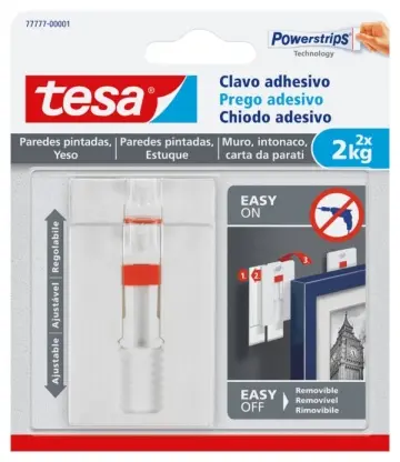 CLAVO ADHESIVO SMS AJUSTABLE REMOVIBLE PARED PINTA 2 KG BLISTER 2 CLAVOS 6 TIRAS TESA TAPE
