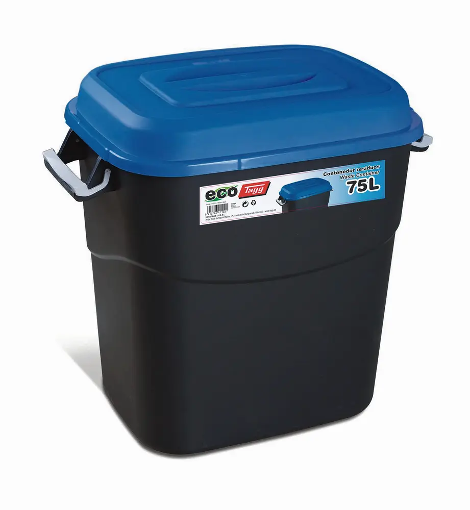 CONTENEDOR BAS. 75LT ASAS/TAPA PP NEGRO T/AZUL 411021 TAYG