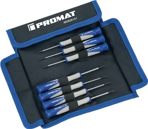 DESTORNILLADOR DE PRECISIÓN, JUEGO 7 PIEZAS PUNTAS PL: 1,5 / 2,0 / 2,4 / 3,0 PH: 00 / 0 / 1 PROMAT