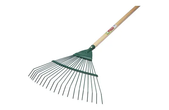 ESCOBA RECOGEHOJAS METALICA 21 DIENTES REDONDOS 43,5 X 37 CM MANGO DE MADERA MAIOL