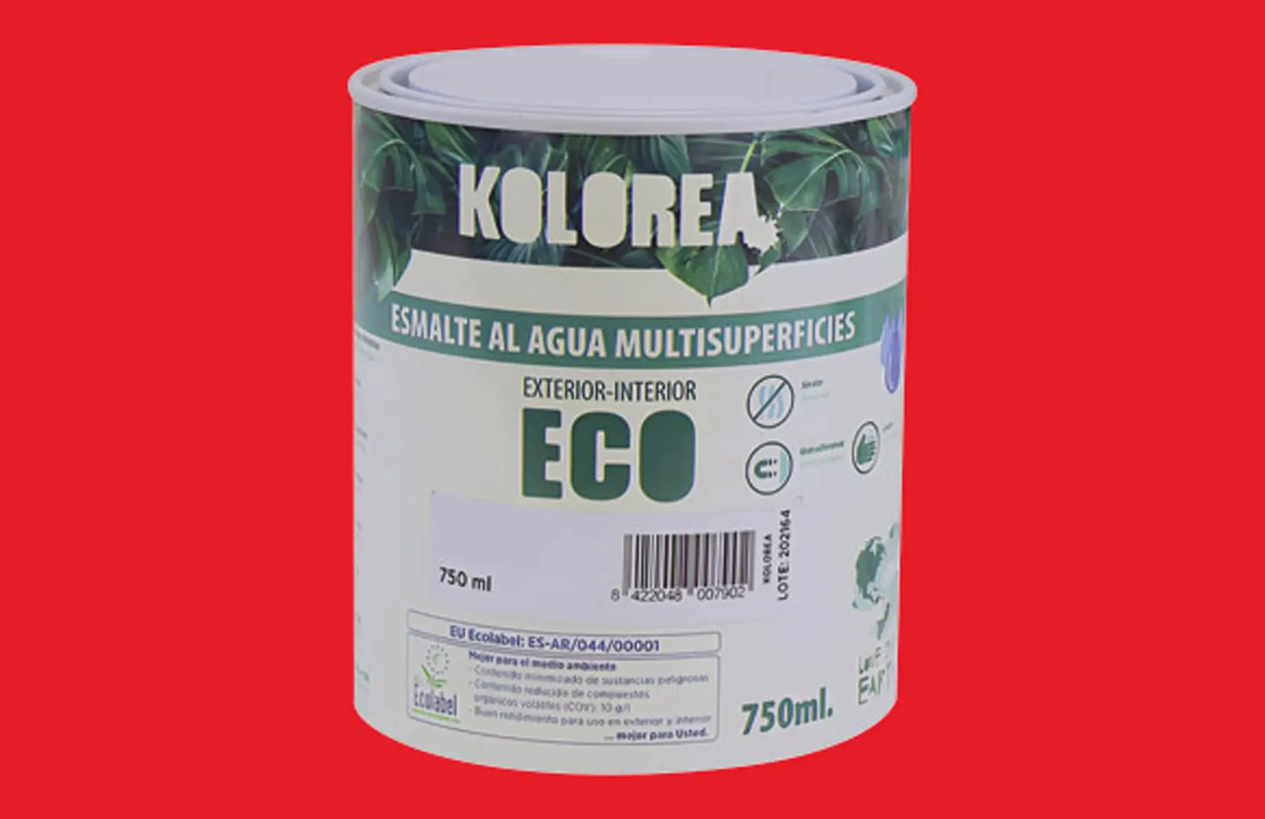 ESMALTE AL AGUA ECO SATINADO 750 ML ROJO CHINA KOLOREA