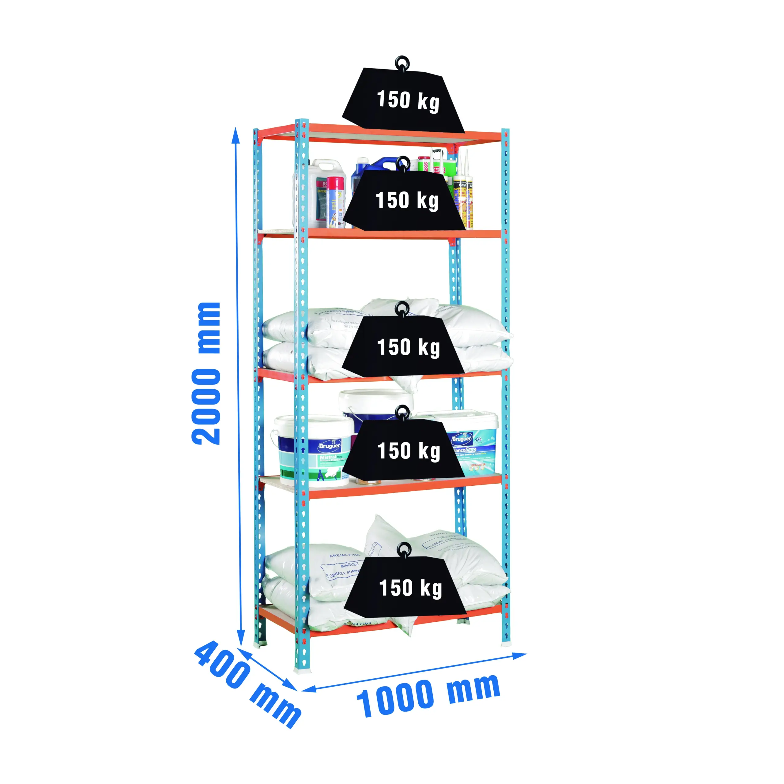 ESTANTERIA METAL MADERCLICK PLUS 5/400 ESTANTES MADERA SIN TORNILLOS 200X100X40CM AZUL/NARANJA SIMON