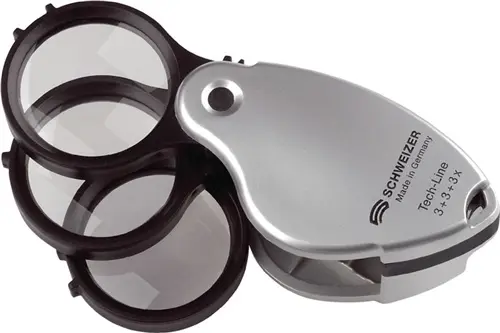 LUPA MANO PLEGABLE 3 LENTES AUMENTO 3X+3X+3X=9X Ø38MM TECH-L SCHWEIZER