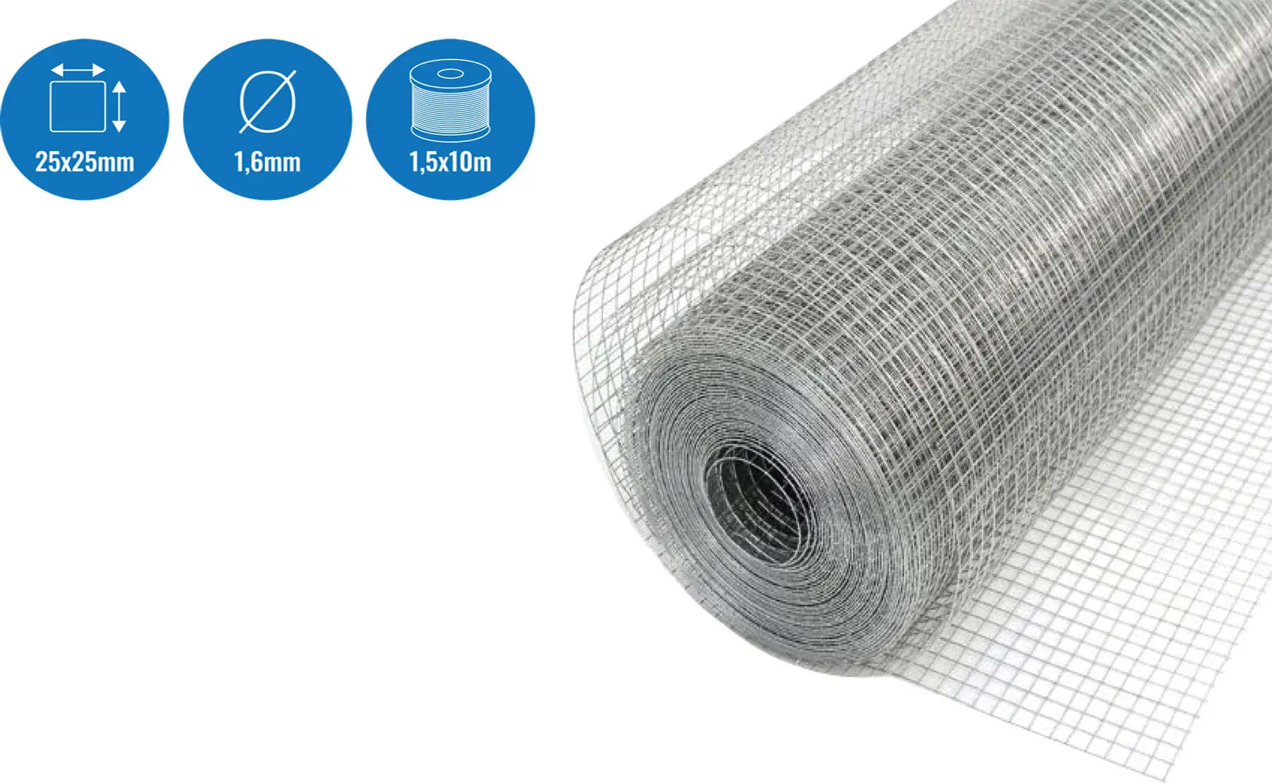 MALLA ELECTROSOLDADA GALVANIZADA 25 X 25 X 1,6 MM 1,5 X 10 M NIVEL