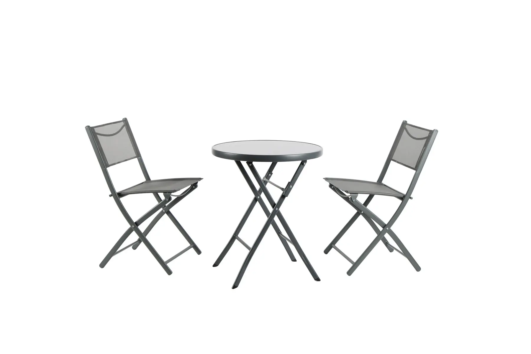 MESA ACERO Ø60 CM + 2 SILLAS PLEGABLES GRIS ANTRACITA IMPORT