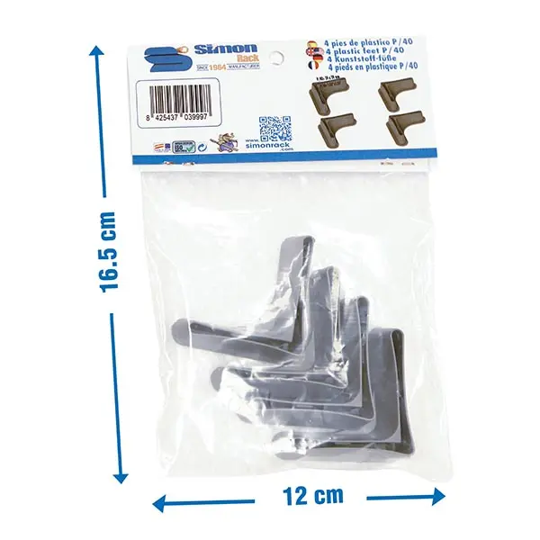 PIE ANGULO ESTANTERIA GRIS P/40 40 X 40 MM 4 UNIDADES SIMONRACK