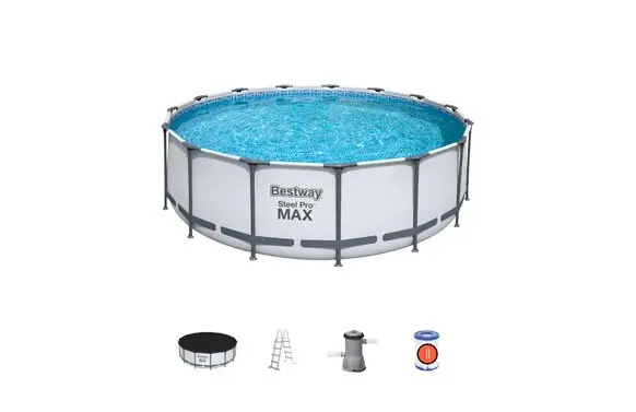 PISCINA DESMONTABLE REDONDA STEEL PRO MAX 16.015 L DEPURADORA CARTUCHO TIPO II Ø 457 X 122 CM BESTWA