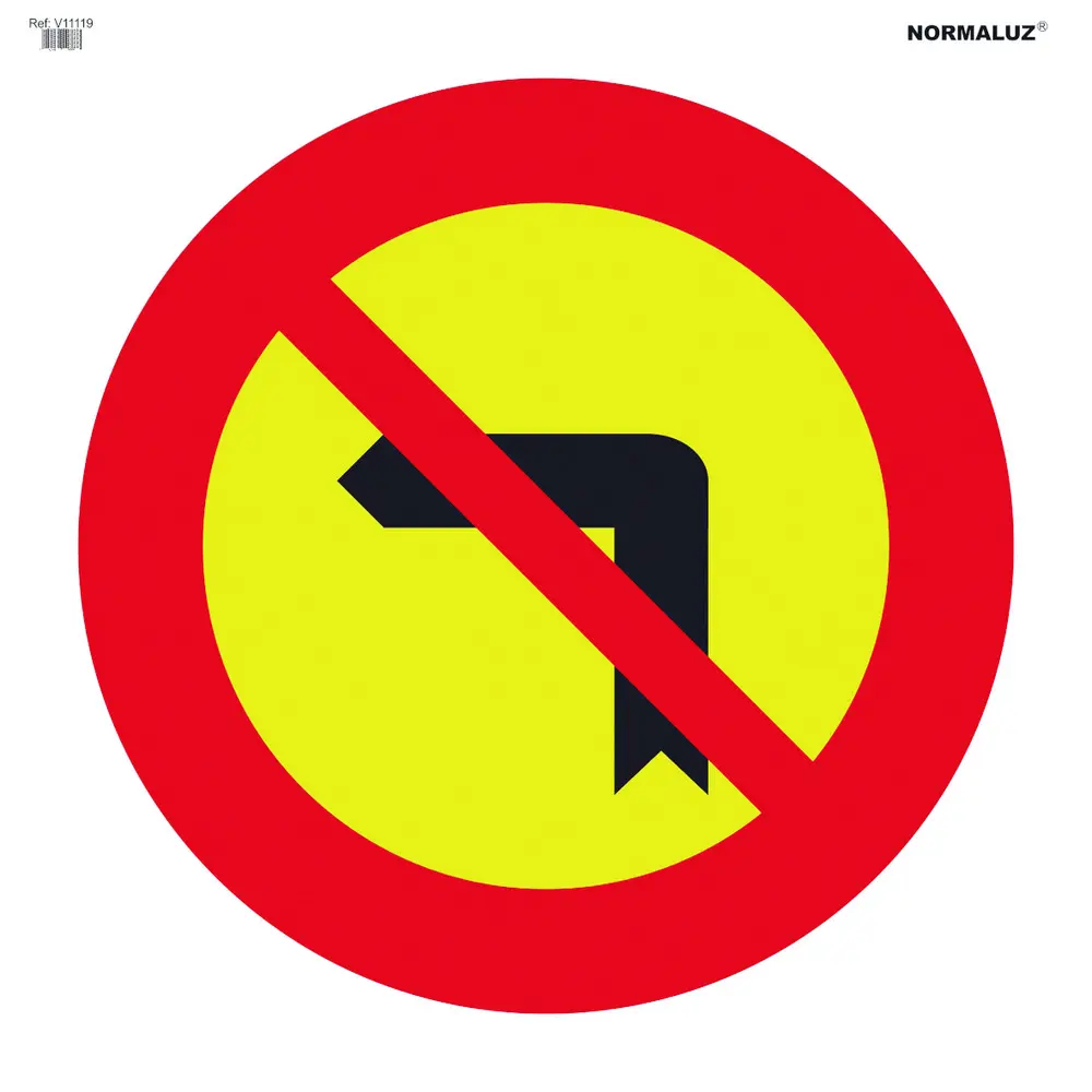 SEÑAL VIAL BOLSA TEXTIL 700X700MM PROHIBIDO GIRO IZQUIERDA V NORMALUZ